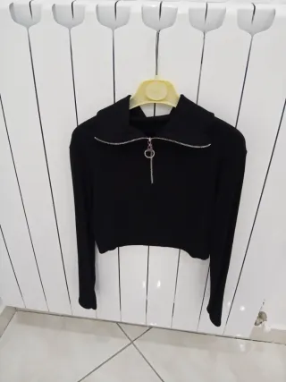 Maglietta donna nera crop con zip