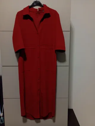 Elegante vestito Sandro Ferrone di colore rosso. - Modello con colletto. - Chiusura con bottoni. - Tasche applicate sul davanti.