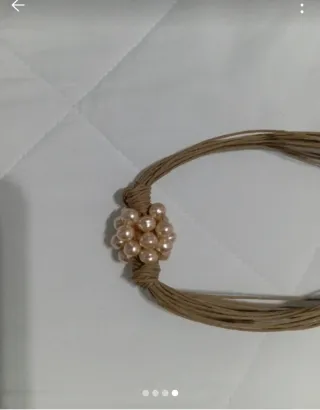 Delicata collana da donna con un grazioso dettaglio centrale. - Filo sottile color oro. - Perle color rosa chiaro. - Chiusura con nodo regolabile.