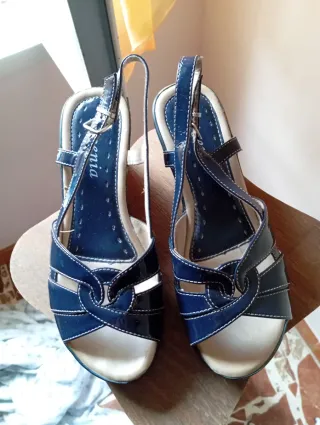 Sandali donna blu e beige