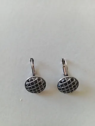 Eleganti orecchini da donna con un design circolare e decorati con piccoli zirconi neri. - Chiusura a monachella. - Design a griglia con pietre incastonate.