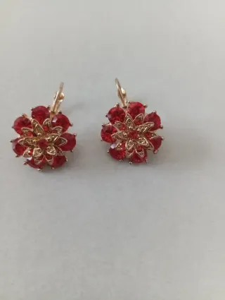 Eleganti orecchini a forma di fiore con pietre rosse e dettagli dorati. - Design floreale. - Incastonatura con pietre rosse. - Montatura color oro.