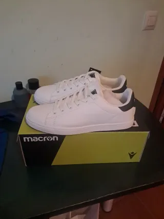 Sneakers sportive del marchio Macron in bianco con dettagli in nero. Design classico e versatile. Logo del marchio sul tallone e sulla soletta.