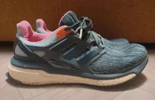 Scarpe da ginnastica Adidas con un design moderno. - Tomaia in tessuto grigio mélange. - Dettagli interni e passanti in rosa acceso. - Suola con tecnologia Boost per un'ammortizzazione reattiva.