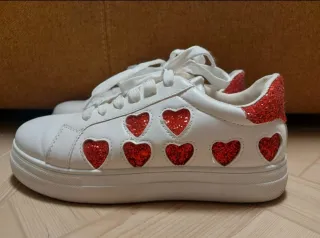 Scarpe da ginnastica bianche con cuori rossi