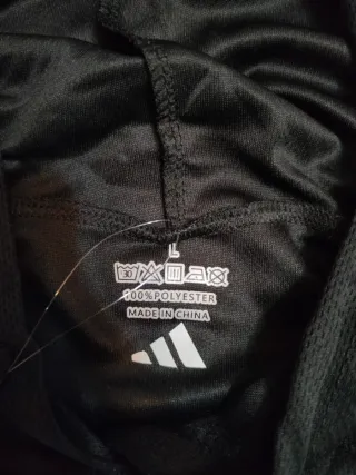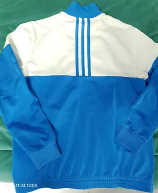 Completo felpato Adidas composto da felpa con cappuccio e pantaloni. - Felpa con zip frontale e cappuccio. - Pantaloni con elastico in vita. - Dettagli a contrasto sulle maniche e sui pantaloni. Leggermente sbiadito un po' il nero dei troppi lavaggi!