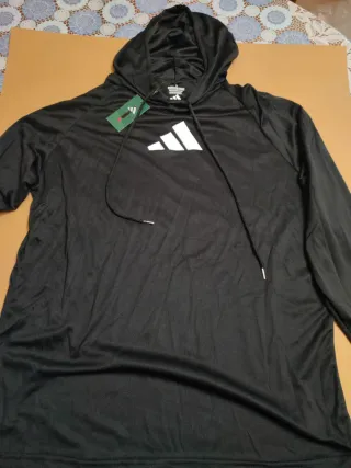 Felpa con cappuccio Adidas. - Logo Adidas bianco sul petto. - Coulisse per regolare il cappuccio. - Tessuto tecnico.
