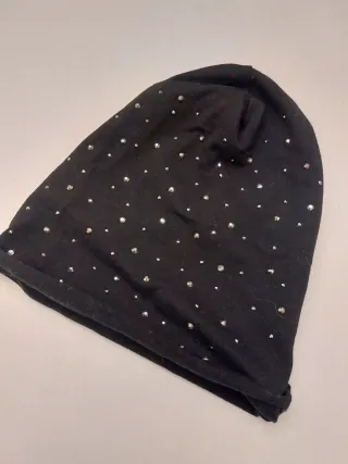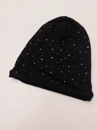 Cappello da donna decorato con piccoli strass scintillanti. Un accessorio che aggiunge un tocco di luce al tuo look. - Tessuto morbido e confortevole. - Design alla moda.