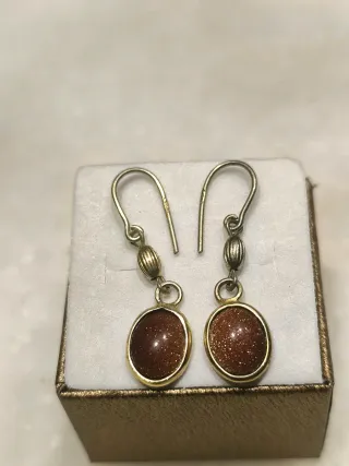 Vendo orecchini pendenti in argento 800 dorato con pietra avventurina