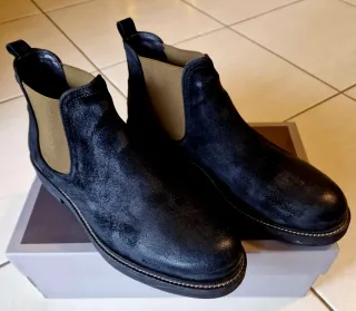 Eleganti stivaletti da uomo con un design anticato. Perfetti per completare un look curato. - Materiale esterno in pelle scamosciata. - Inserti elastici laterali per una calzata agevole. - Fodera interna in tessuto. - Suola in gomma resistente.