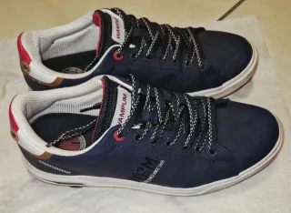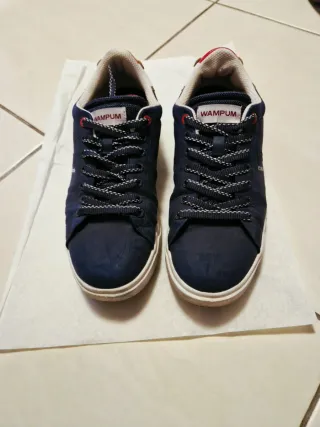 Scarpe da uomo Wampum di colore blu. - Lacci bianchi e neri. - Dettagli rossi e bianchi sul tallone. - Logo WPM ricamato sul lato.