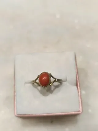 Anello vintage in argento 800 dorato con pietra in corallo rosso naturale. Misura 10