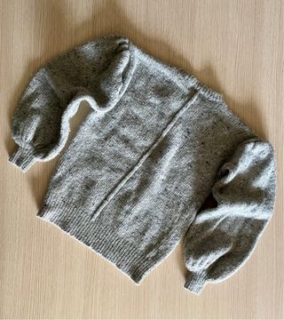 Elegante pullover in lana merino, 100% originale, perfetto per ogni occasione. - Taglia XS - Colore grigio mélange - Maniche a sbuffo - Scollo rotondo