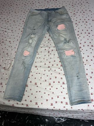 Jeans azzurri con strappi rosa. taglia 32 american