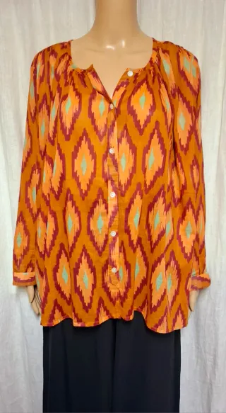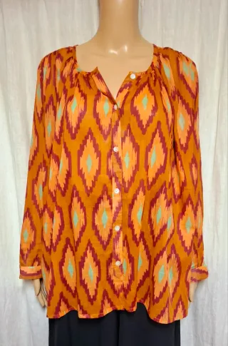 Camicia a maniche lunghe con una vivace fantasia ikat. - Scollo a V con bottoni. - Maniche lunghe. - Tessuto leggero.