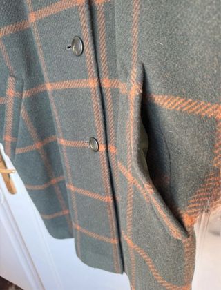 Cappotto dal taglio sartoriale con un classico motivo a quadri. Spalle a raglan. Vestibilita’ mordiba. Lunghezza 3/4 - Fantasia a quadri. - Bottoni frontali.