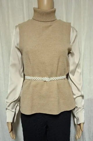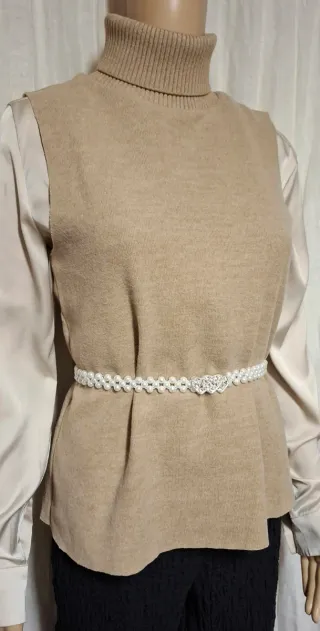 Maglione senza maniche Zara con collo alto. - Tessuto morbido e comodo. - Dettaglio cintura perline bianca. - Nuovissime senza cartellino.