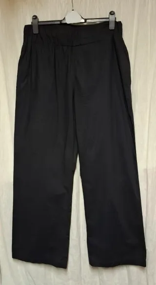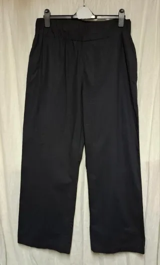 Pantaloni eleganti in colore nero. - Due tasche laterale. - Vita elasticizzata. - Gamba larga.