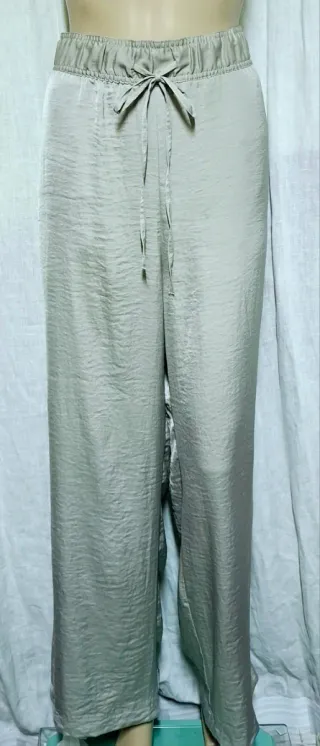 Pantaloni H&M in tessuto leggero e drappeggiato. - Vita elasticizzata con coulisse. - Gamba larga e dritta. - Tessuto con finitura lucida. - Due tasche laterali.