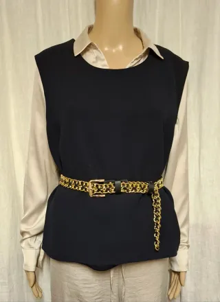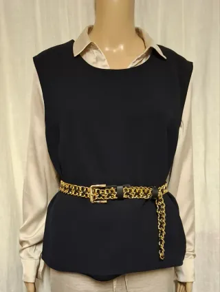 Gilet nero con cintura catena oro