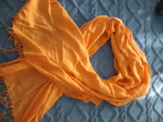 Elegante pashmina con un vivace colore arancione. Perfetta per aggiungere un tocco di stile. - Materiale morbido e leggero. - Orlata con frange decorative.