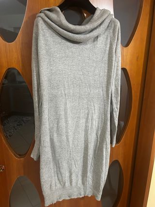 Vestito grigio con collo alto, perfetto per un look casual. - Tessuto morbido e confortevole. - Maniche lunghe. - Lunghezza al ginocchio.