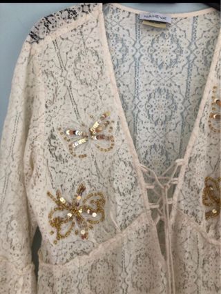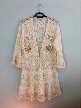 vestito donna lavorazione in pizzo Maniche a 3/4 Ampio scollo a v Applicazioni in paiettes Elastico in vita Ideale cone copricostume