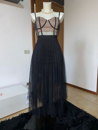 Abito lungo nero in tulle