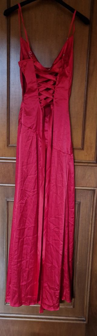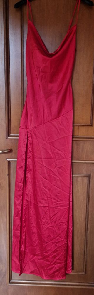 Elegante abito da sera lungo. - Tessuto satinato. - Spacco laterale. - Spalline sottili. - Scollo morbido. Poliestere elastico Lunghezza cm 138 Ascella cm 38 Usato una volta no difetti