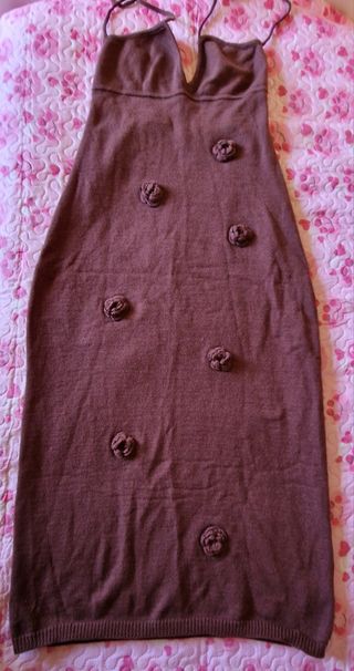 Vestito invernale da donna con un design unico. Lunghezza cm 126 da ascella ad ascella cm 42 acrilico poliestere - Decorato con applicazioni floreali. - Tessuto morbido e caldo. - Spalline sottili.