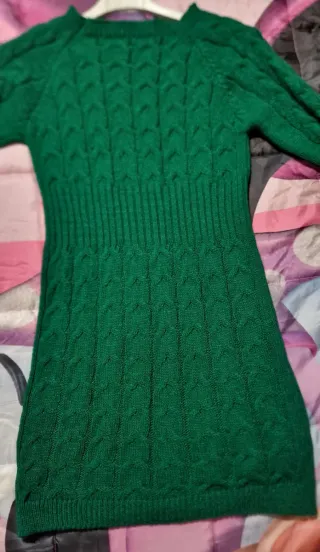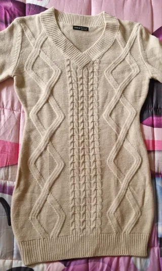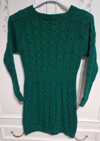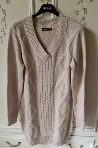 Vestito invernale con un design a trecce e rombi. 100x100 acrilico Lunghezza cm 60 Ascella cm 54 Spalle cm 52 - Scollo a V. - Maniche lunghe. - Lunghezza al ginocchio. Usato una volta no difetti