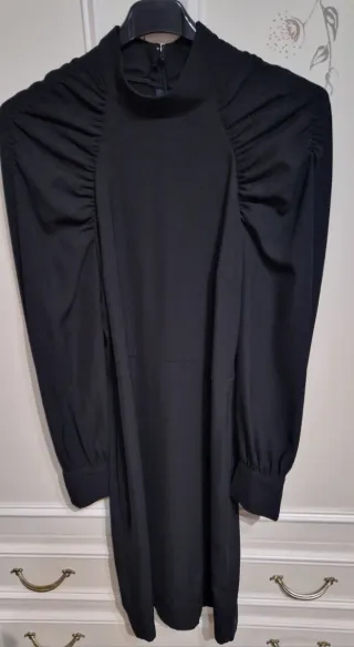 Elegante vestito da sera da donna, perfetto per occasioni speciali. Lunghezza cm 98 da ascella ad ascella cm 46 larghezza spalle cm 43 - Tessuto con texture lucida. - Maniche lunghe. - Collo alto.