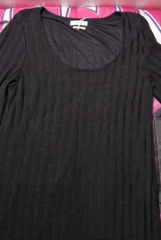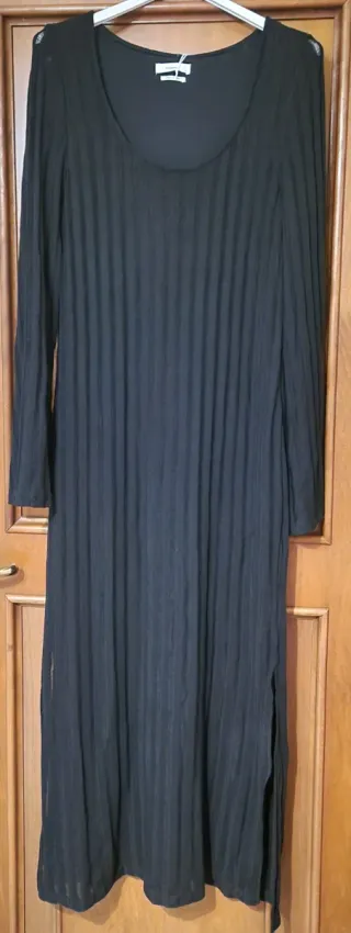 Elegante abito lungo da donna con collo alto in perfette condizioni. -Taglia 44/46 IT 40/42 EUR - Tessuto a coste verticali. - Maniche lunghe.