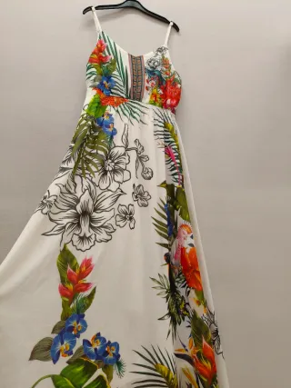 Vestito lungo bianco con decorazione floreale. In velo, con doppio tessuto sotto e spalline sottili. È più stretto in vita e cade morbido. Ideale per cerimonie e anche per serate estive. Vestibilità M, taglia etichetta S/M. Misure specifiche(no circonferenza): distanza ascellare 47cm, lunghezza totale da spalla a giù 145cm, vita 37cm elasticizzata. #vinteditalia #estate #pantaloncini #jeans #femme #shorts #vintedfrance #vintedspain #vintedcloset #vintagestyle #fashion #chic #vintage #summer #winter #autumn #spring #indie #hipster #aesthetic #alternative #basic #sport #indie #kids #abito #man #dress #uomo #vendocapi #saldi #sales