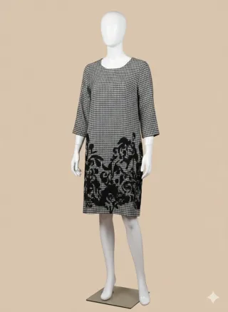 Vestito Pied de Poule con Ricami