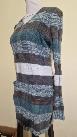 Vestitino corto o maglione lungo donna in lana a costine elasticizzato.