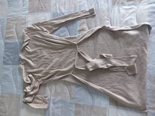 Vestito da donna Mango color beige, taglia L. Modello con cintura da annodare. - Tessuto leggero e drappeggiato. - Maniche lunghe. - Scollo a V.