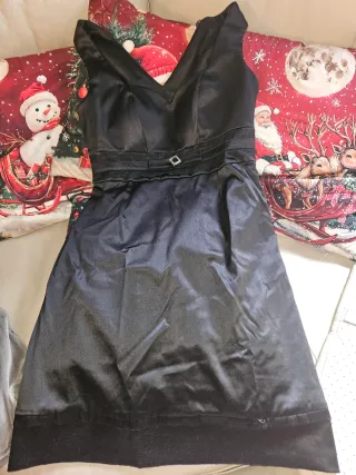 Elegante vestito da cerimonia da donna, nuovo e mai indossato. - Taglia: 44 Italiana - Materiale: Sintetico - Lunghezza manica: no manica - Dettagli: paiettes, soprabito in finto tulle, chiusura sulla schiena ad asola