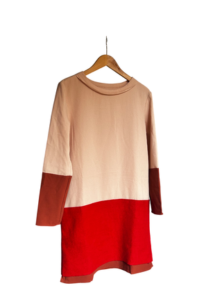 Vestito da donna con un design a blocchi di colore. - Maniche lunghe. - Girocollo.