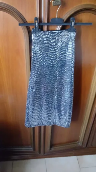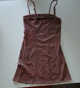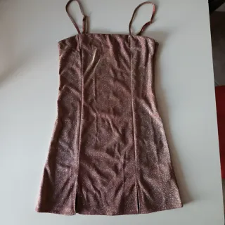 Miniabito rosa glitter in ottime condizioni, praticamente nuovo - Spalline sottili regolabili - Tessuto brillantinato - Chiusura con cerniera laterale