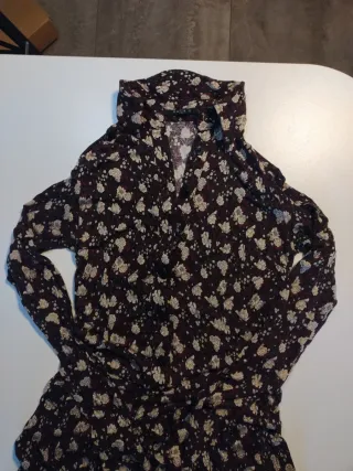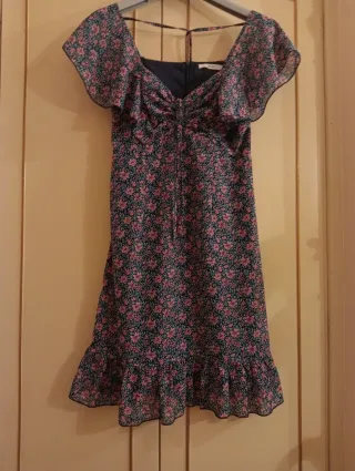 Elegante abito H&M Divided con stampa floreale. - Fantasia con fiori gialli e blu su fondo nero. - Tessuto leggero e fluido.
