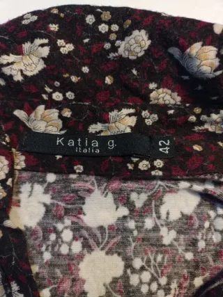 Abito da donna con una fantasia unica. - Colore base verde oliva con dettagli viola. - Taglia molto grande. In cotone maniche lunghe.