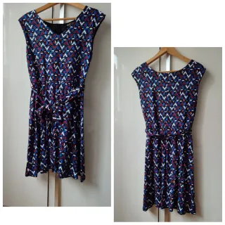 Set composto da due vestiti Promod. - Fantasia floreale blu e bianca. - Fantasia geometrica rossa e gialla. - Maniche 3/4