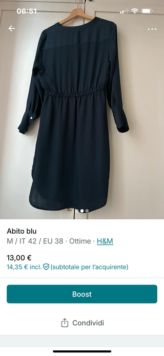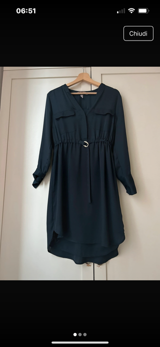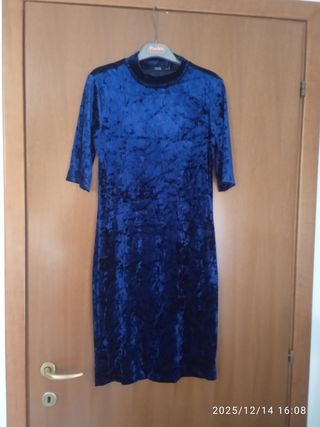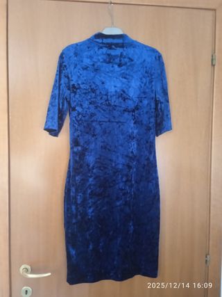 Vestito blu Cina come nuovo, tg. M veste taglie 42 e 44, tessuto effetto velluto, buona elasticità. Manica a 3/4. Misure: ascella-ascella 44 cm, spalla-spalla 39 cm, lunghezza 96 cm. Come nuovo.