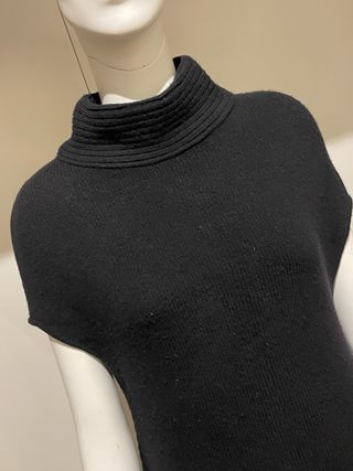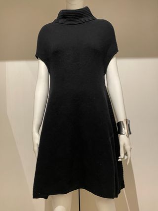 Abito artigianale in pura lana colore nero Tg M in discreto stato, difetto sull'orlo come da foto. Realizzato su modello Ann Demeulemeester Elegante abito in lana con collo alto. - Maniche corte. - Linea svasata. - Tessuto morbido.