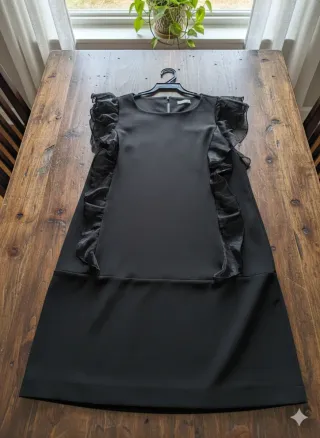 Elegante tubino nero da donna, perfetto per diverse occasioni. - Spalline con dettagli. taglia 44 - Tessuto di qualità h,. 95 cnm dalla spallina alla fine del vestitio