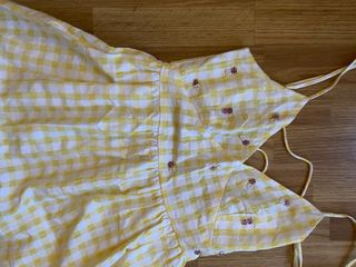 Vestito estivo con stampa a quadri. Design leggero e fresco. Spalline sottili. Dettaglio floreale ricamato sul petto. Manca un fiore ricamato sul petto, probabilmente perso in negozio. Utilizzato solo 3 volte. Taglia M/L, ma veste bene anche su S grazie alla regolazione sulla schiena. Particolarmente comodo per chi ha il seno grande. Ha un sottile rivestimento bianco sotto.