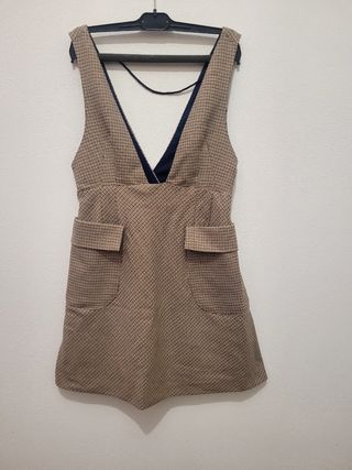 Vestito Zara con fantasia a quadri. - Maniche lunghe. - Scollo rotondo. - pantaloncino sotto la gonna