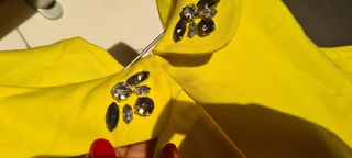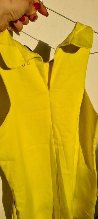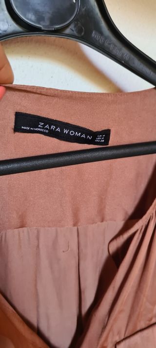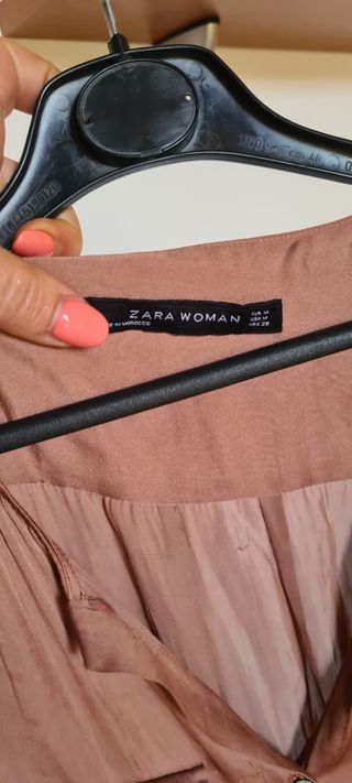 Vestito Zara con fantasia a rombi, colore arancio. Etichetta taglia M. Spedisco - Maniche corte. - Scollo a V con colletto. - Chiusura con bottoni. - Tessuto leggero.
