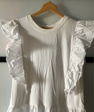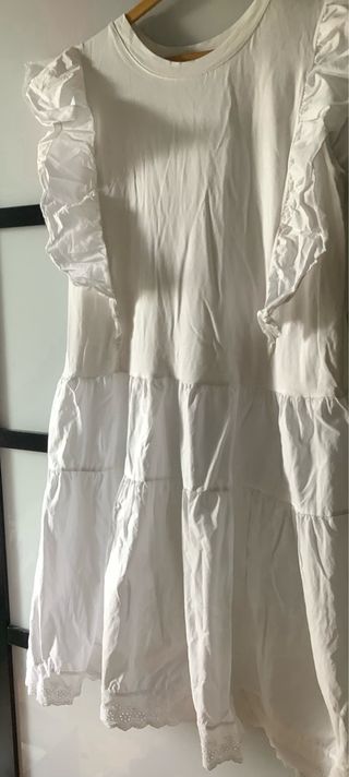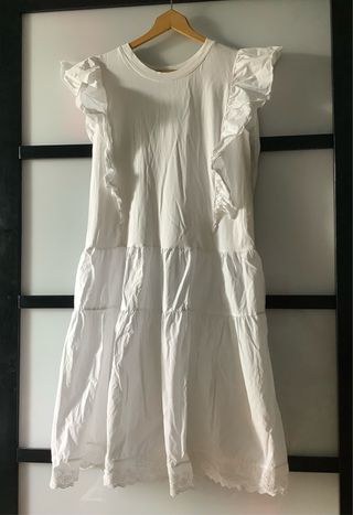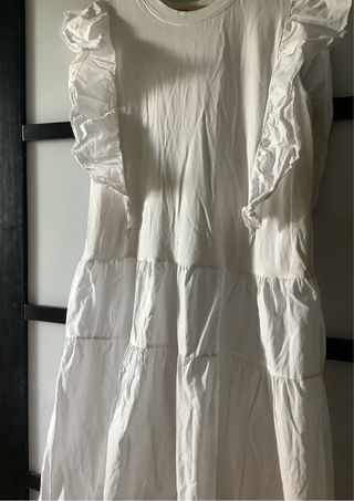 Bellissimo abitino bianco in cotone con voulants, anallergico, taglia M, nuovo, vendo a prezzo affare a soli 30 euro. + spese di spedizione. Molto bello indossato!